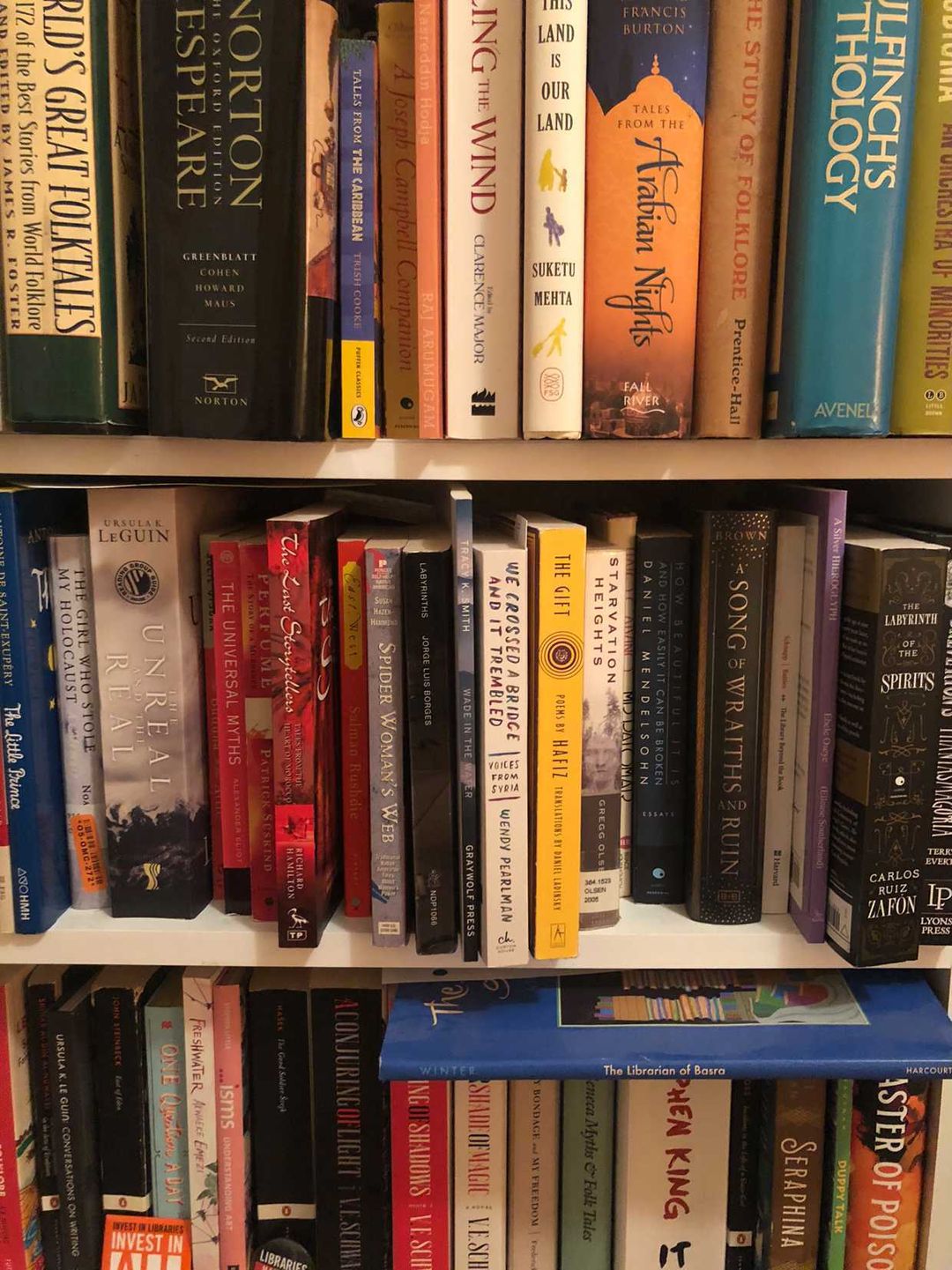 I see you have Labyrinths by Jorge Luis Borges square in the middle of your shelfie. That’s the book that contains the enduring short story “The Library of Babel,” about an infinite library. In a way, through that story Borges brings “the library” onto the mythic plane, and if I remember correctly (it’s been years since I read it), the very endlessness of that building is a bit terrifying, which is unusual because libraries themselves are rarely represented as scary places (Ghostbusters notwithstanding). All that said, what is there to fear in the library?